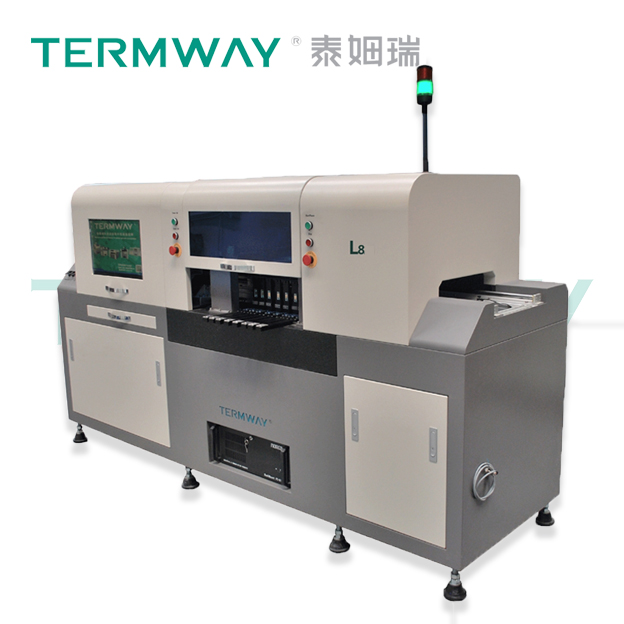 L8 貼片機是一款在線式LED 專用貼片機,可以和全自動絲印機、回流焊實現無縫接駁。用來實現大批量LED 電路板的組裝,具有“在線式”“高速”“高精度”等特點。