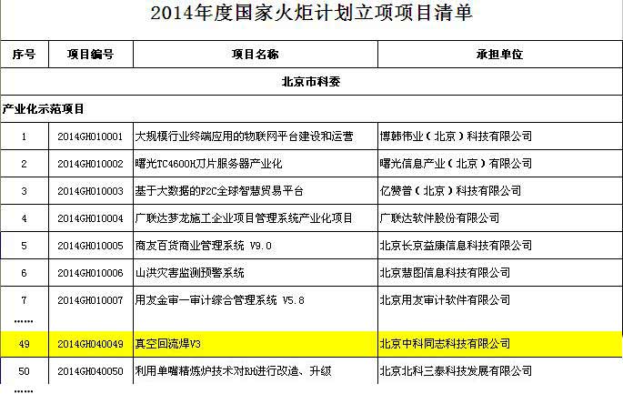 此項工作已于近日圓滿完成,同志科技攜新研發成果——真空回流焊V3進行報名參加評選,并成功取得了2014年度國家火炬計劃立項項目。