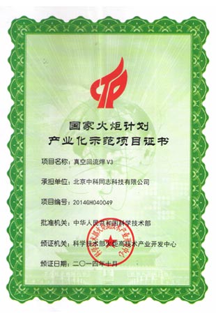 真空回流焊機V3取得2014年中國電子裝備工業設計紅帆獎并取得國家火炬計劃示范項目證書。