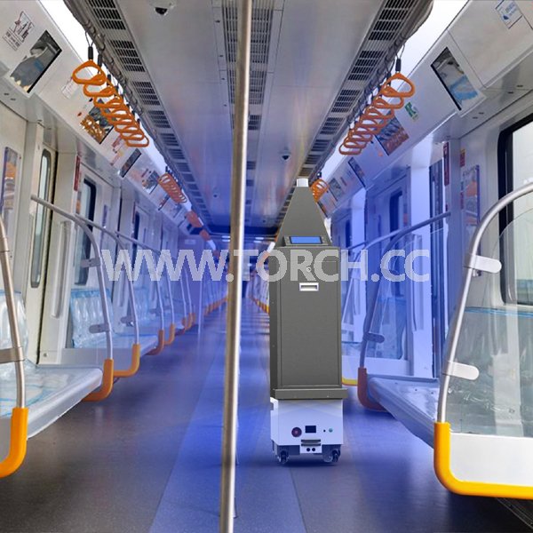通過大功率深紫外殺毒模塊和機器人的有機結合,開發出地鐵專用殺毒機器人。在地鐵停用后,無人值守自動完成地鐵車廂的殺毒。